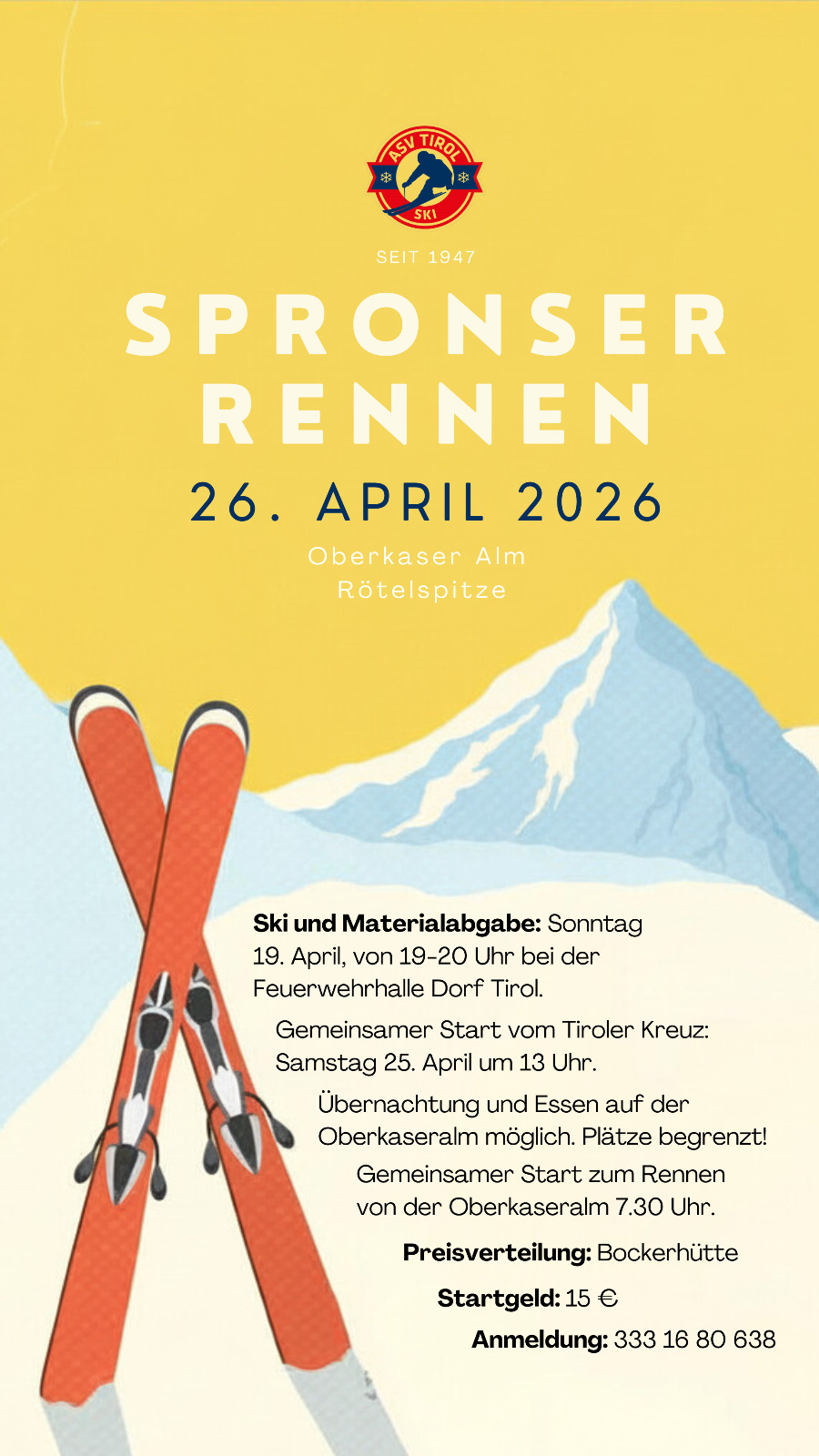 Ski und Materialabgabe: Sonntag 19. April von 19-20 Uhr bei der Feuerwehrhalle. Gemeinsamer Start vom Tiroler Kreuz: Samstag 25. April um 13.00 Übernachtung und Essen auf der Oberkaseralm möglich. Plätze begrenzt! Anmeldung: 333 16 80 638