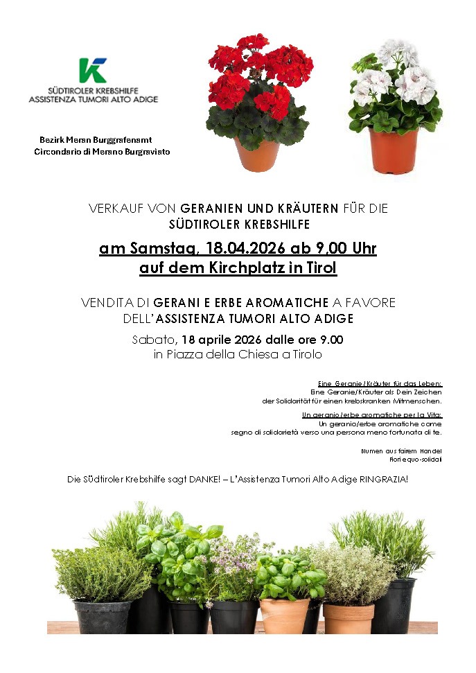 Verkauf von Geranien und Kräutern zu Gunsten der Südtiroler Krebshilfe.