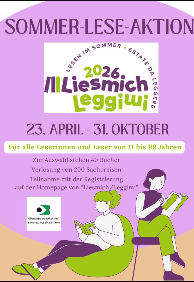 Für alle LeserInnen von 11 bis 99+. zur Auswahl stehen 40 Bücher. Zu gewinnen gibt es auch was. Registriere dich auf der Seite "Liesmich/Leggimi"