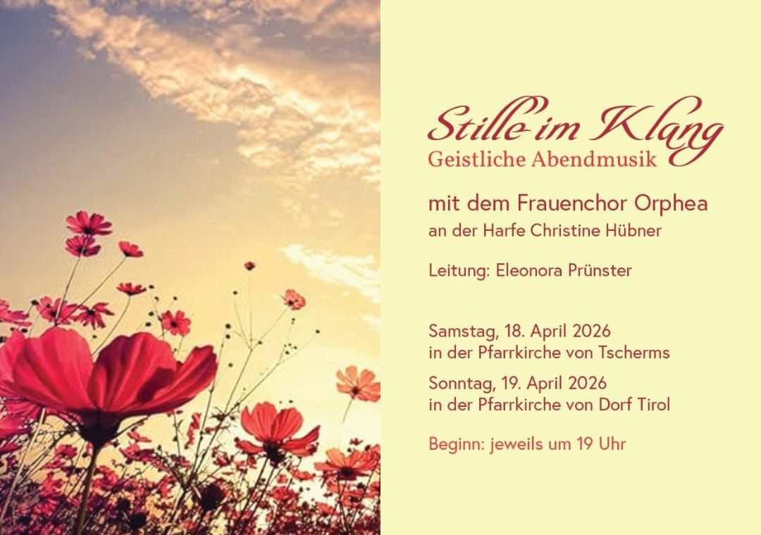 Geistliche Abendmusik mit dem Frauenchor Orphea. An der Harfe Christine Hübner. Unter der Leitung von Eleonora Prünster